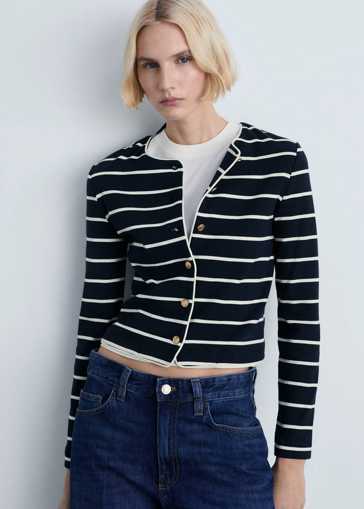 Stripped knit cardiganCurrent price [$ 65.99 ]$ 65.99Select a colourDark NavySelect your sizeXXSNot available. I want it!XSNot available. I want it!SNot available. I want it!MNot available. I want it!LNot available. I want it!XLNot available. I want it!XXLNot available. I want it!1XLNot available. I want it!2XLNot available. I want it!3XLNot available. I want it!4XLNot available. I want it!DimensionsNotify meAdd to WishlistSee lookFree delivery to store100% cotton fabric. Straight design. Striped print. Round neck. Long sleeves. Button fastening at the front. Available PlusDetails, composition and careStore availability