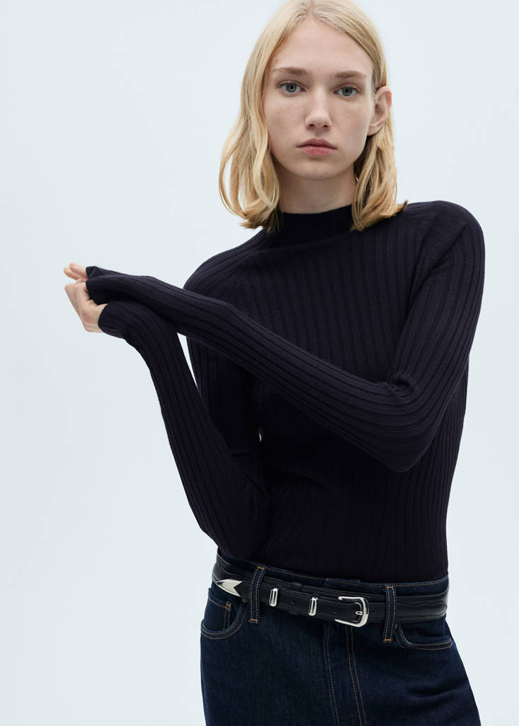Ribbed sweater with perkins neck