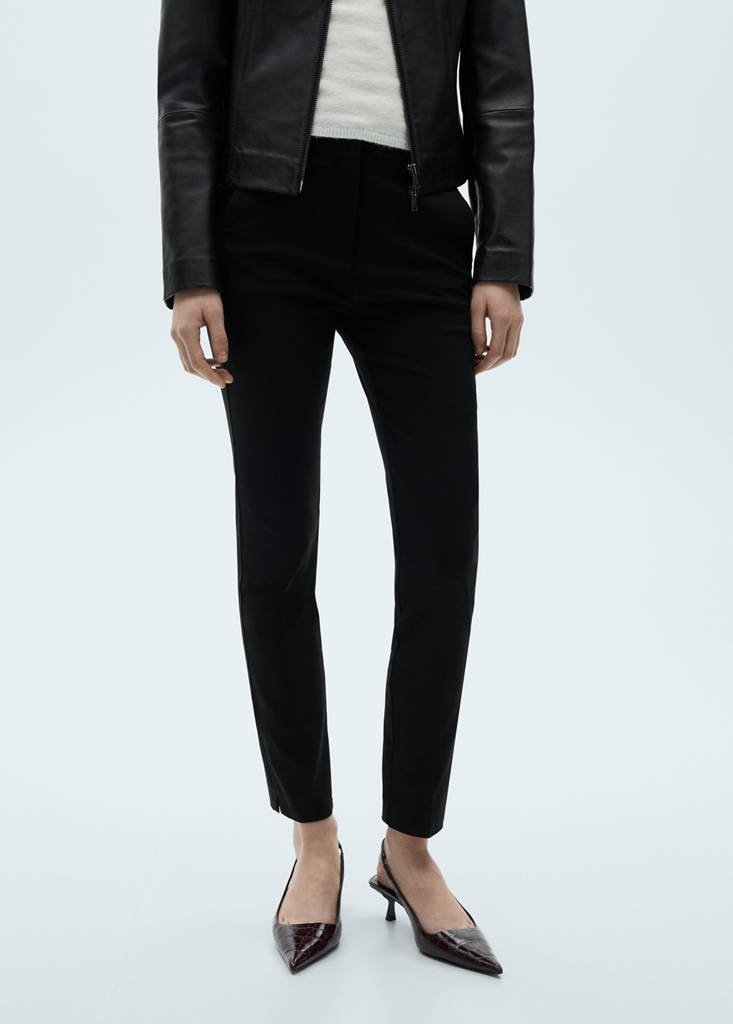 Crop design. Skinny fit. Mid-rise. Two side pockets. Two welt pockets at the back. Concealed button, hook and zip fastening. Inner lining. Fluid fabric. Cotton blend fabric. Side pockets. Long design. Zip and button fastening. Two side welt pockets. Suit style. Stretch fabric. Button, hook and zip front closure. Available Plus. Skinny trousers with high elasticity and comfort. Sustainable. Office looks. Belt loops