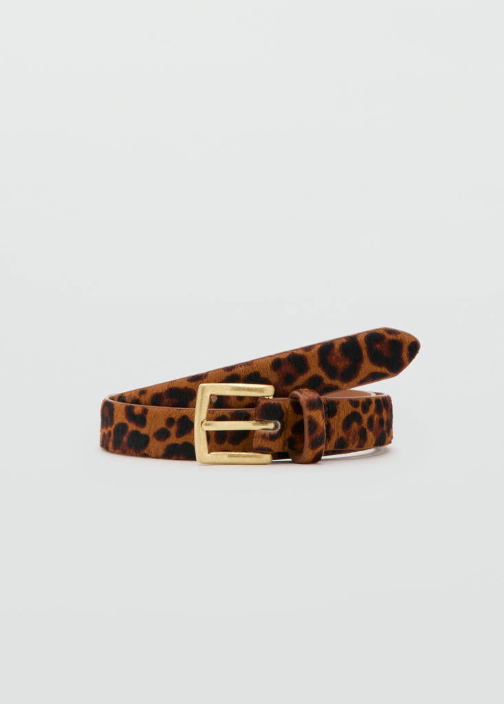 100% cuir bovin avec poils. Imprimé léopard. Fermeture à boucle