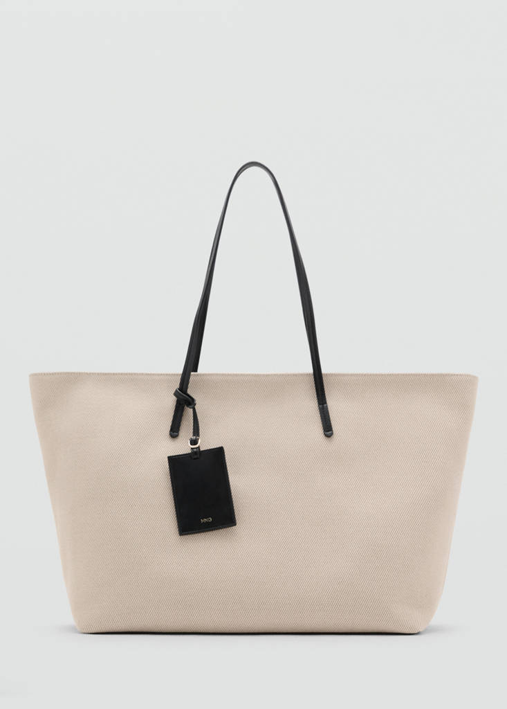 Grande taille. Toile. Style shopper. Deux anses d'épaule. Anse contrastée. Poche intérieure. Fermeture à glissière. Détail de breloque