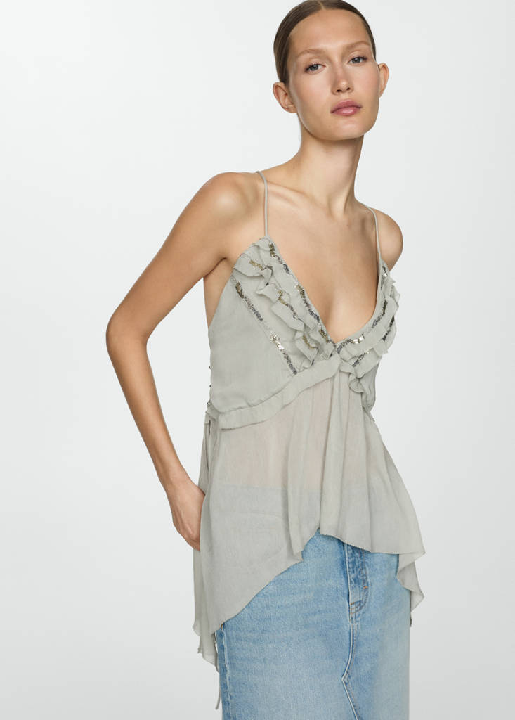 Top volants et perles