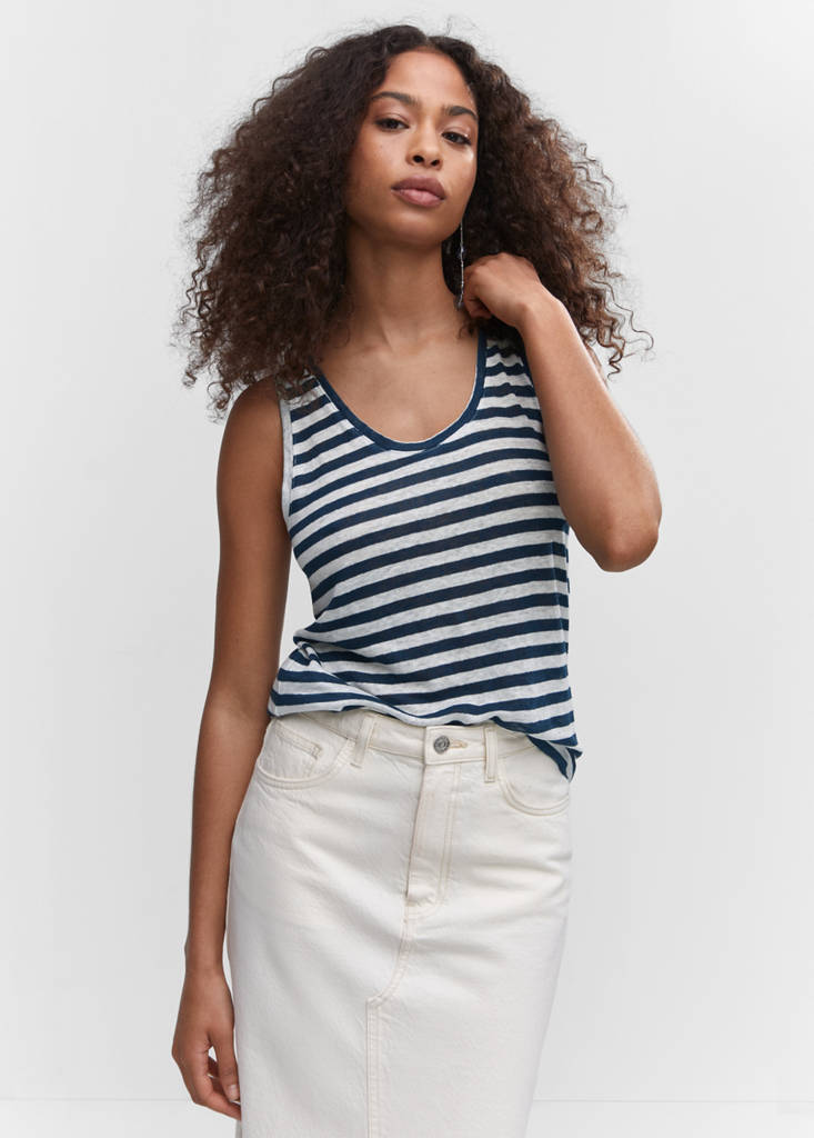 Tissu 100 % lin. Coupe droite. Coupe longue. Col droit. Bretelles larges. Sans fermeture. Disponible Plus
