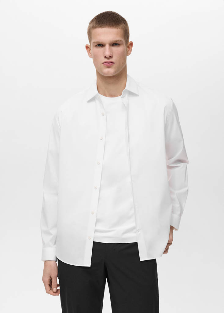 Collection Performance. Wrinkle free : tissu infroissable. Thermorégulateur : Ce tissu offre une respirabilité optimale pour maintenir votre température stable. Comfort Stretch : Tissu élastique pour plus de confort. Non iron: garment that does not require ironing, made of a crease-resistant fabric. Respirant : Ce tissu aide à réguler la température corporelle en permettant d’évacuer l'humidité. Coupe regular. Col classique. Fermeture avant avec boutons. Manches longues et poignets boutonnés. Ourlet arrondi