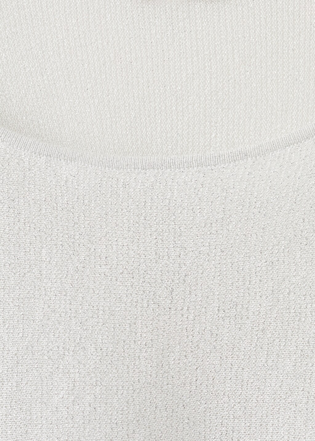 Tissu lurex. Maille fine. Design asymétrique. Col rond. Manche longue. Sans fermeture. Collection fêtes et grandes occasions.