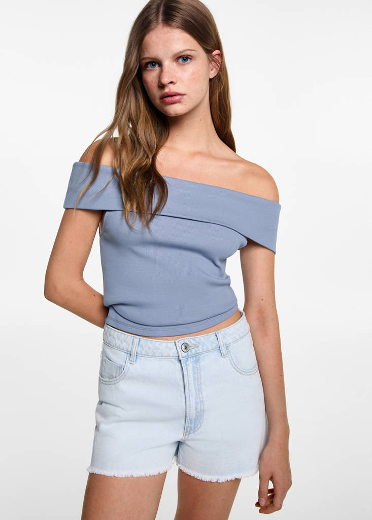 Design côtelé. Design épaules dénudées. Design crop. Coupe courte