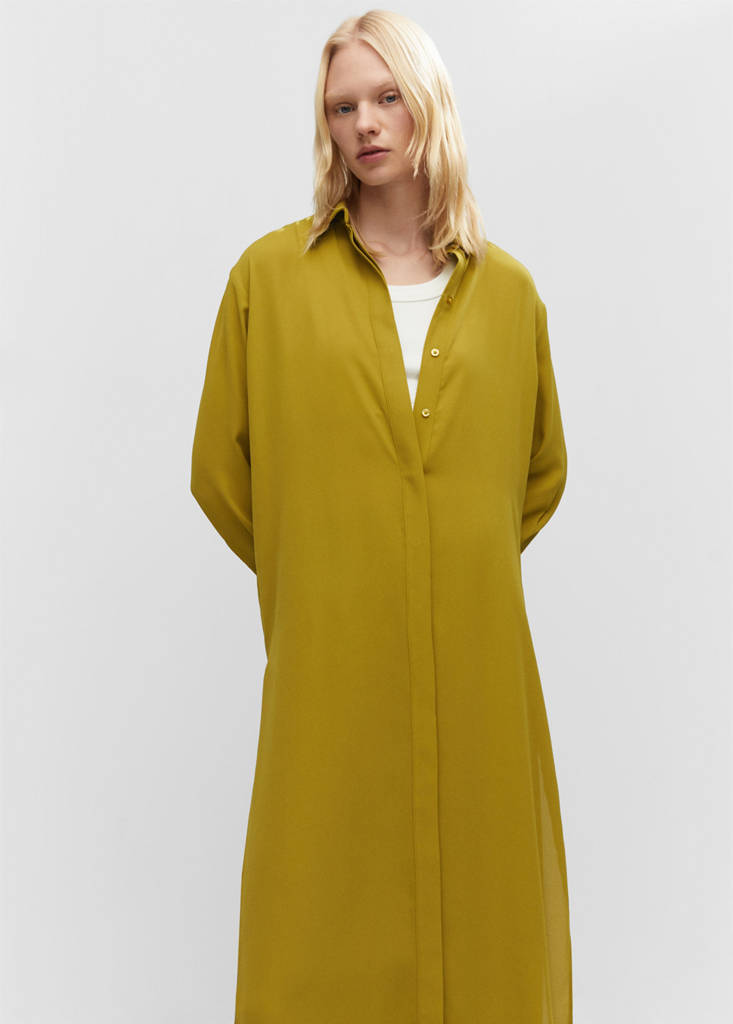 Hemdstil. Gerades Design. Langes Design. Hemdkragen. Lange Ärmel mit Knopfmanschetten. Knopfverschluss vorne. Saum mit Seitenschlitzen. Total Look. Büro-Looks