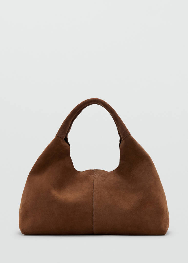 Große Größe. 100 % Rindsleder. Rauleder. Ziernähte. Schulterriemen. Integrierte Geldbörse. Metallknopfverschluss. Innenfutter. Exklusiv Online