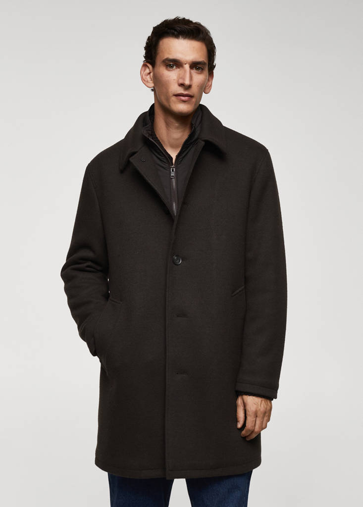Woll-Mischgewebe. Regular Fit. Langes Design. Abnehmbarer wattierter Kragen mit Reißverschluss. Zwei Vordertaschen. Lange Ärmel. Gerader Saum. Wärmeregulierend: Dieses Gewebe bietet optimale Atmungsaktivität, um Ihre Körpertemperatur konstant zu halten. Vorderer Verschluss mit Knöpfen. Klassischer Kragen