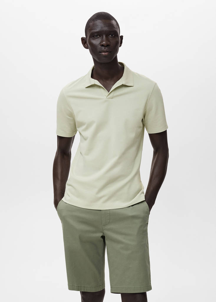 Slim Fit. Baumwollmischgewebe. Poloshirtkragen ohne Knöpfe. Kurze Ärmel. Gerader Saum. ESSENTIALS: Hergestellt, um zu halten. Baumwollpikee. Polo-Kragen mit V-Ausschnitt ohne Verschluss. Kurze Ärmel. Die Farbe Weiß ist exklusiv online