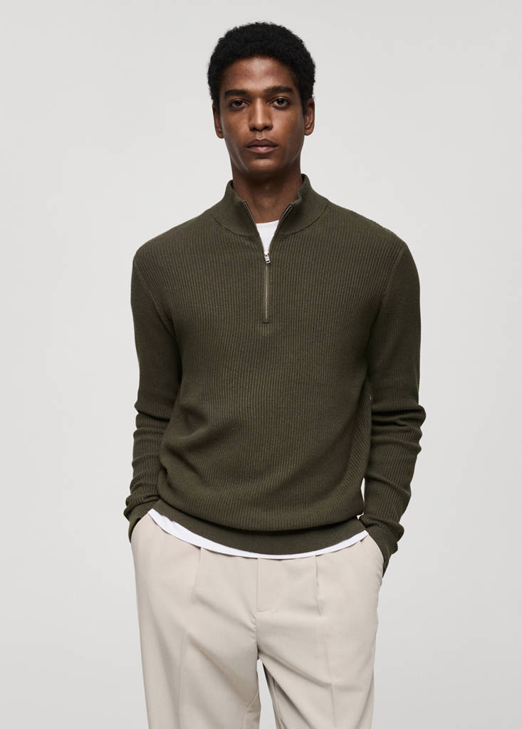 Gerippter Pullover mit Zip-Kragen