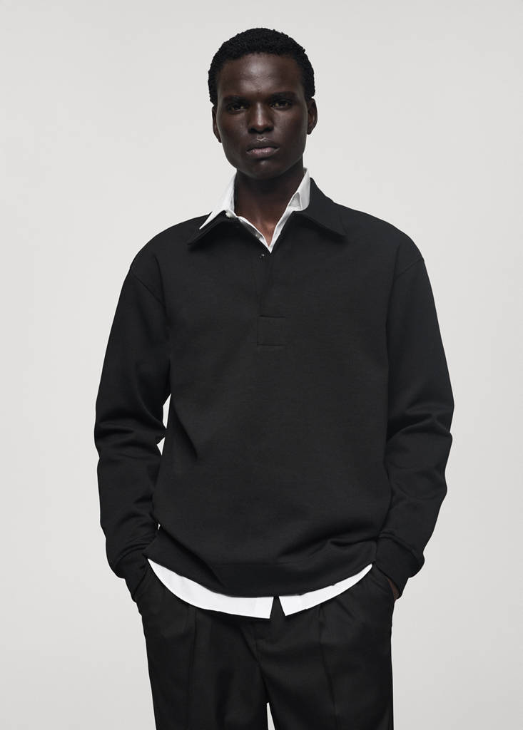Relaxed Fit. Lange Ärmel mit elastischen Bündchen. Gerader Saum mit seitlichen Schlitzen. Baumwollstoff. Poloshirtkragen mit Druckknöpfen. Gerippte Ärmelbündchen