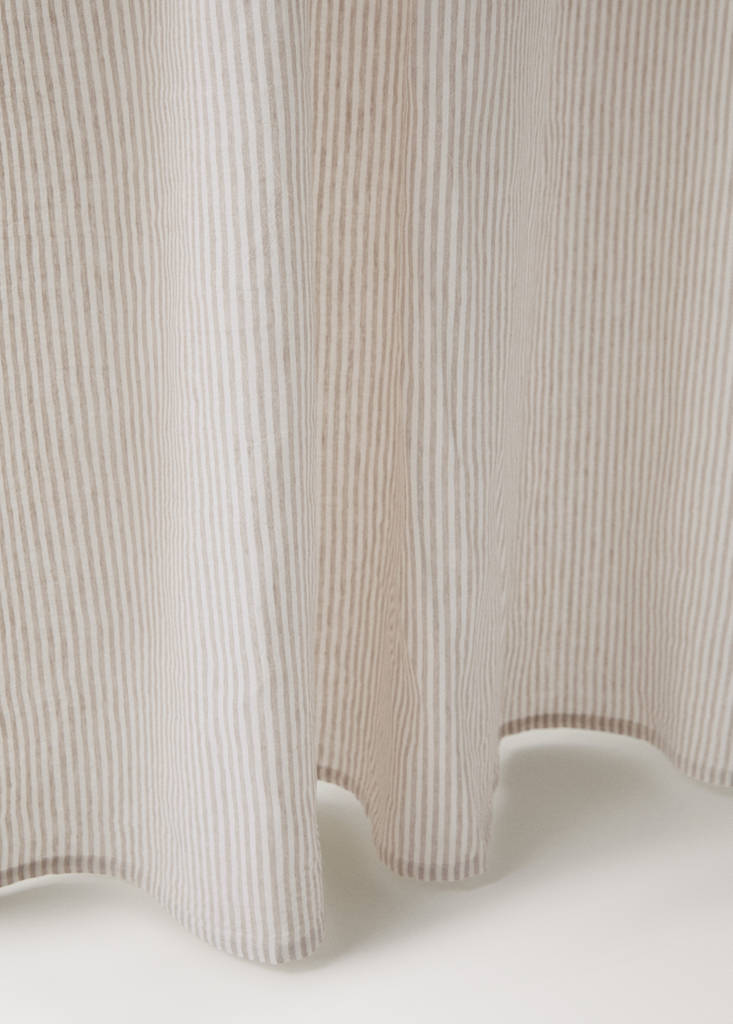 Größe: 140x270cm. Mittlere Opazität. Streifendesign. Vorhang aus einer Mischung aus Leinen und Baumwolle gefertigt, was eine fließende und natürliche Textur verleiht. Sein minimalistisches Design und die mittlere Opazität erleichtern den Zugang zu Helligkeit und Frische in jedem Raum.