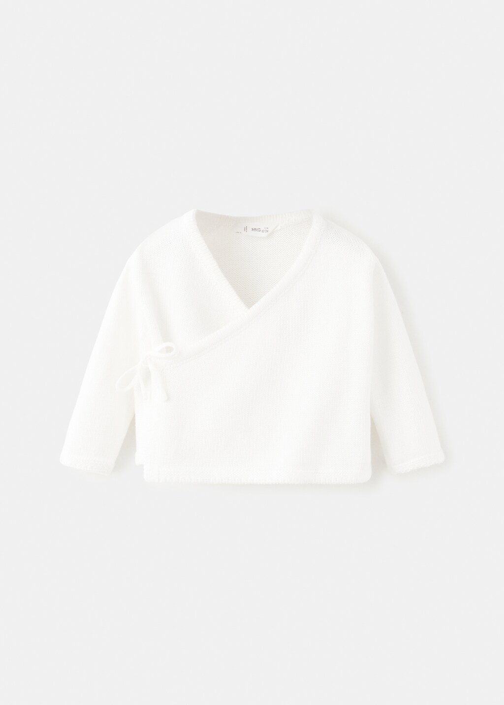 Baumwollmischgewebe. Gestrickter Stoff. Gerades Design. Überschlag-Design. Gekreuzter V-Ausschnitt. Lange Ärmel. Seitlicher Schleifenverschluss. Welcome Collection. Maternity Collection.