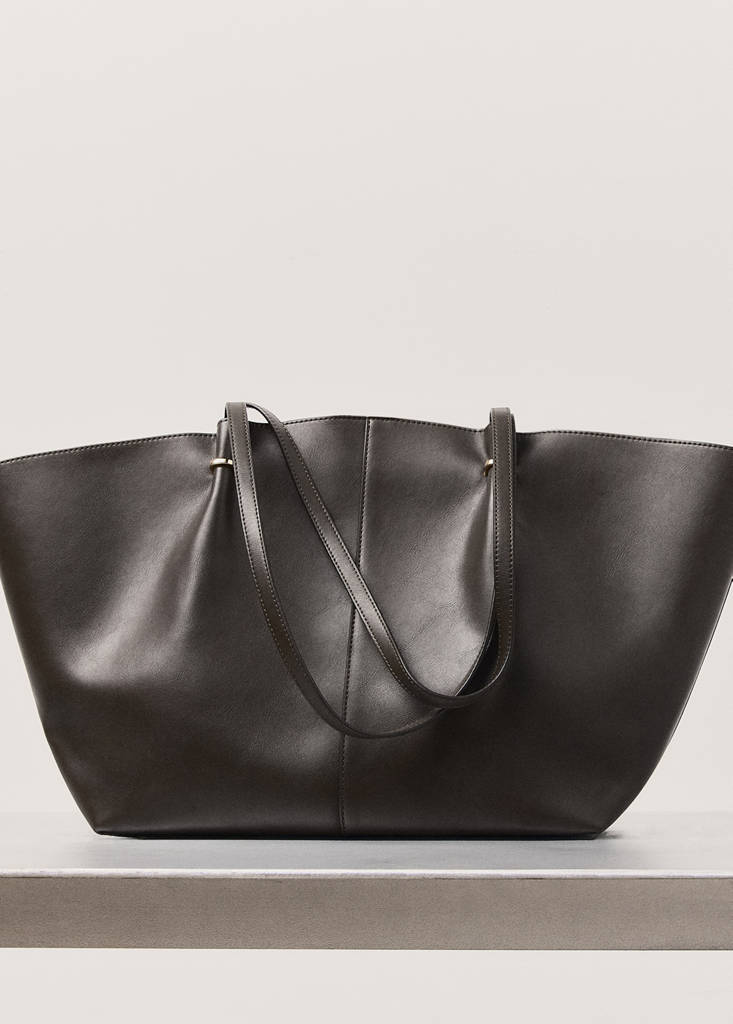 Effet cuir. Style shopper. Deux anses d'épaule. Détails métalliques. Poche intérieure zippée. Fermeture à bouton magnétique. Doublure intérieure