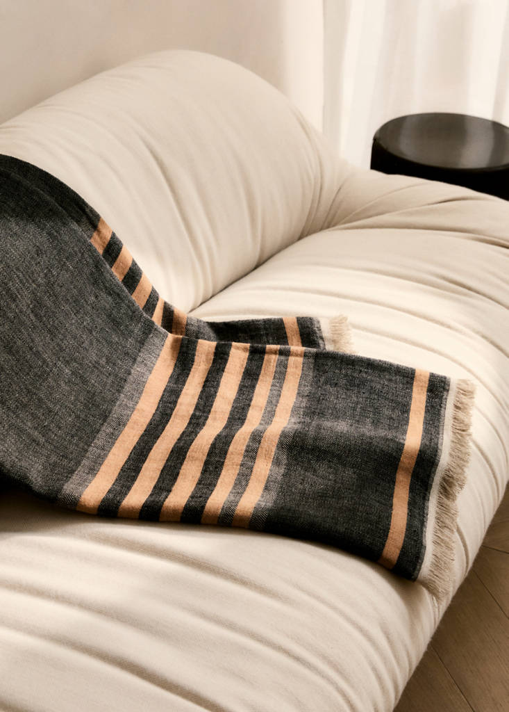 100% Lin. Dimensions : 130x180 cm. Motif à rayures. Rayure tissée. Finition à franges. Tissu de chaleur modérée. Idéal pour les saisons intermédiaires. Crée une ambiance chaleureuse et accueillante. Qualité premium