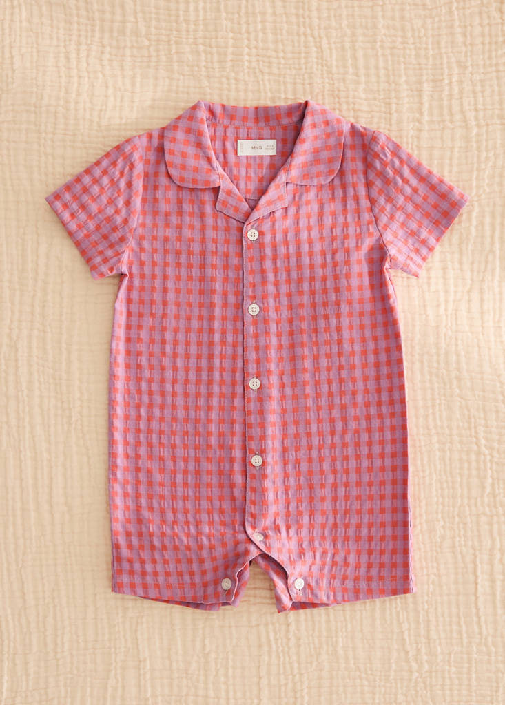 Tissu en mélange de coton. Coupe droite. Design court. Motif à carreaux. Col chemise. Manches courtes. Fermeture avant avec boutons