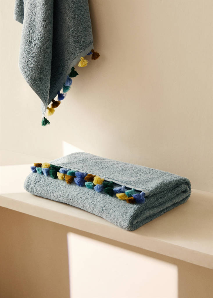 Serviette toilette. Dimensions : 50x90 cm. Grammage : 480 g/m2. Son design moderne rehausse n'importe quelle salle de bain, alliant douceur et grande absorption. Pompons décoratifs. Allie fonctionnalité et élégance. Disponible en plusieurs couleurs. Se combine avec les autres tailles de la collection