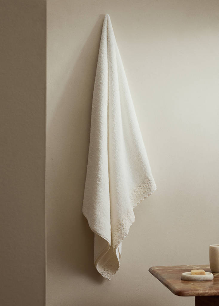 Taille : 90x150cm. Finition dentelle. Grammage : 480 g/m2. Son design élégant ajoutera une touche de sophistication à votre salle de bains. À combiner avec d'autres articles de la collection