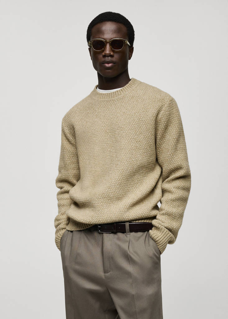 Coupe regular. Maille moyenne. Tissu structuré. Col rond. Finitions en bord-côte