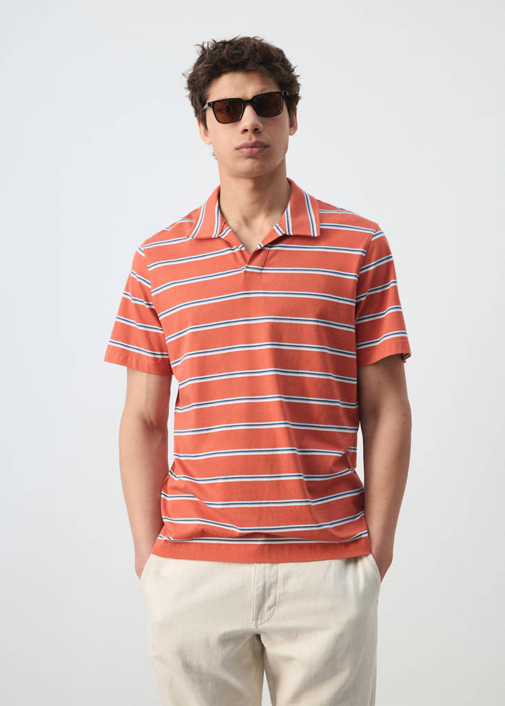 100 % coton. Conception regular fit. Motif rayé. Tissu piqué. Col bowling. Manche courte
