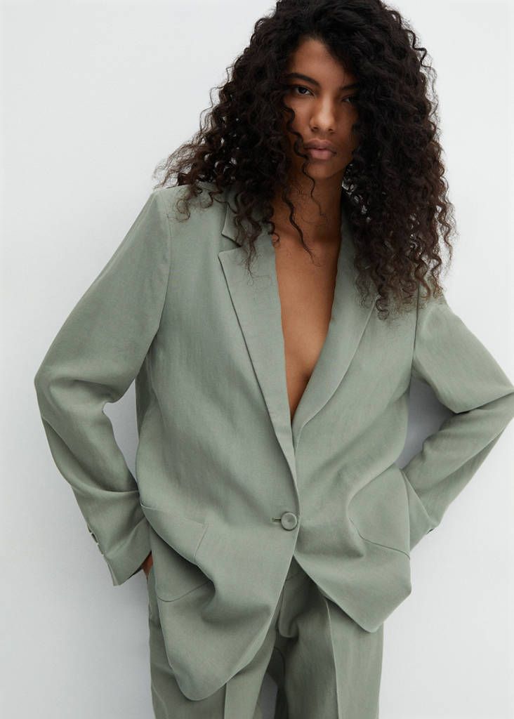 Tissu en mélange de coton et lyocell. Coupe droite. Col en V avec rabat. Revers à encoche. Manches longues et poignets boutonnés. Deux poches plaquées à l'avant. Fermeture à bouton sur le devant. Doublure. Total look