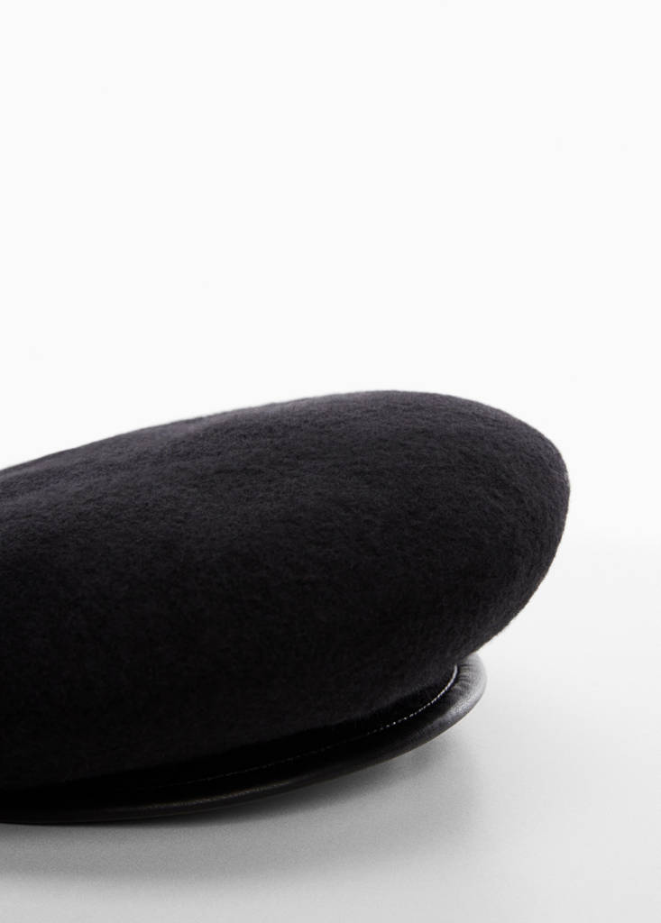 100 % laine mérinos. Détails de liséré. Style béret