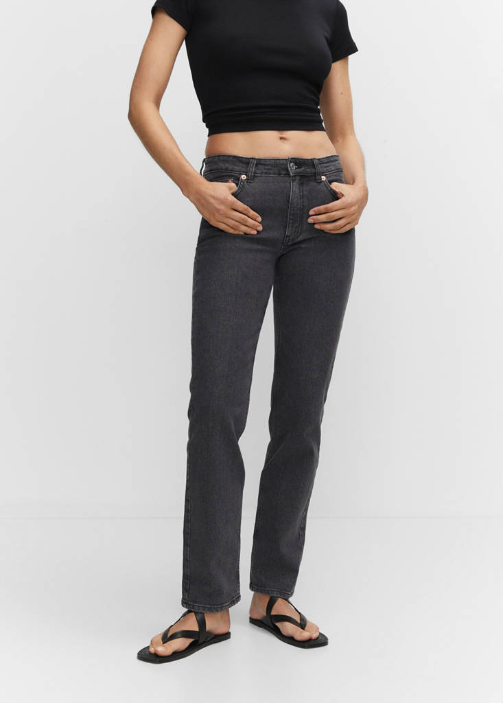 Tissu en coton de style jean. Coupe longue. Coupe droite. Taille normale. Fermeture Éclair avec bouton. Deux poches latérales. Deux poches plaquées à l'arrière. Passants pour la ceinture. Longueur intérieure 79 cm