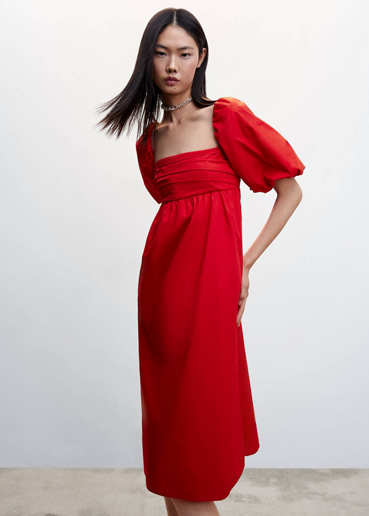 Robe coton manches bouffantesPrix actuel [38 000 XOF ]38 000 XOFChoisissez une couleurRougeChoisissez votre tailleXSSMLXLMesuresAjouter aux FavorisVoir le lookLivraison gratuite en boutiqueTissu 100 % coton. Tissu popeline de coton. Coupe midi. Évasé. Col carré. Manches courtes bouffantes. Fronce sur le haut. Doublure en cotonDétails, composition et entretienDisponibilité en boutique