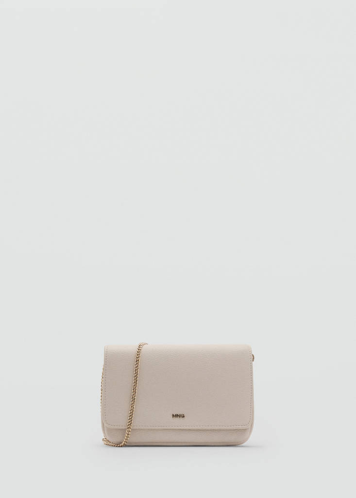Petite taille. Effet cuir. Anse bandoulière. Anse en chaîne. Deux poches intérieures. Fermeture à rabat avec bouton magnétique. Logo en relief. Doublure intérieure. Chaîne fine métallique. Double compartiment intérieur. Coupe croisée