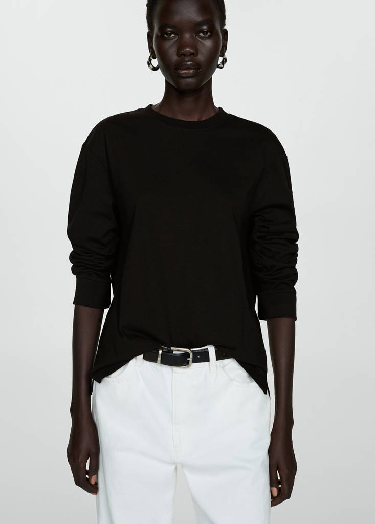Coupe droite. Col rond. Manche longue. Sans fermeture. Tissu 100% coton