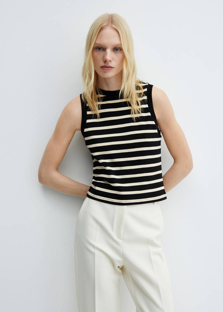 Top à rayures cotonPrix actuel [15 500 XOF ]15 500 XOFChoisissez une couleurNoirChoisissez votre tailleSMLMesuresAjouter aux FavorisVoir le lookLivraison gratuite en boutique100% coton. Coupe droite. Col rond. Sans manches. Bretelles larges. Sans fermeture. Total look. Motif rayéDétails, composition et entretienDisponibilité en boutique