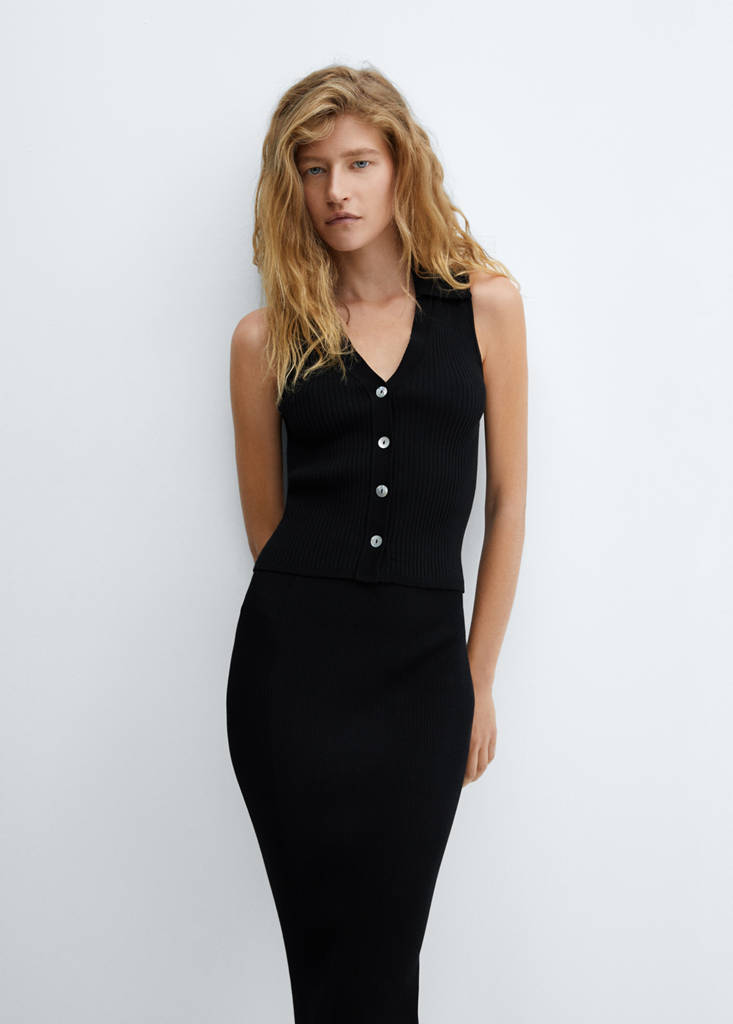 Top maille boutonsPrix actuel [29 000 XOF ]29 000 XOFChoisissez une couleurNoirLe mannequin porte la taille S et mesure 177cm.Choisissez votre tailleXSSMLXLMesuresAjouter aux FavorisVoir le lookLivraison gratuite en boutiqueTissu en maille fine. Maille côtelée. Col chemise en V. Sans manches. Fermeture avant avec boutons. Coupe cintréeDétails, composition et entretienDisponibilité en boutique