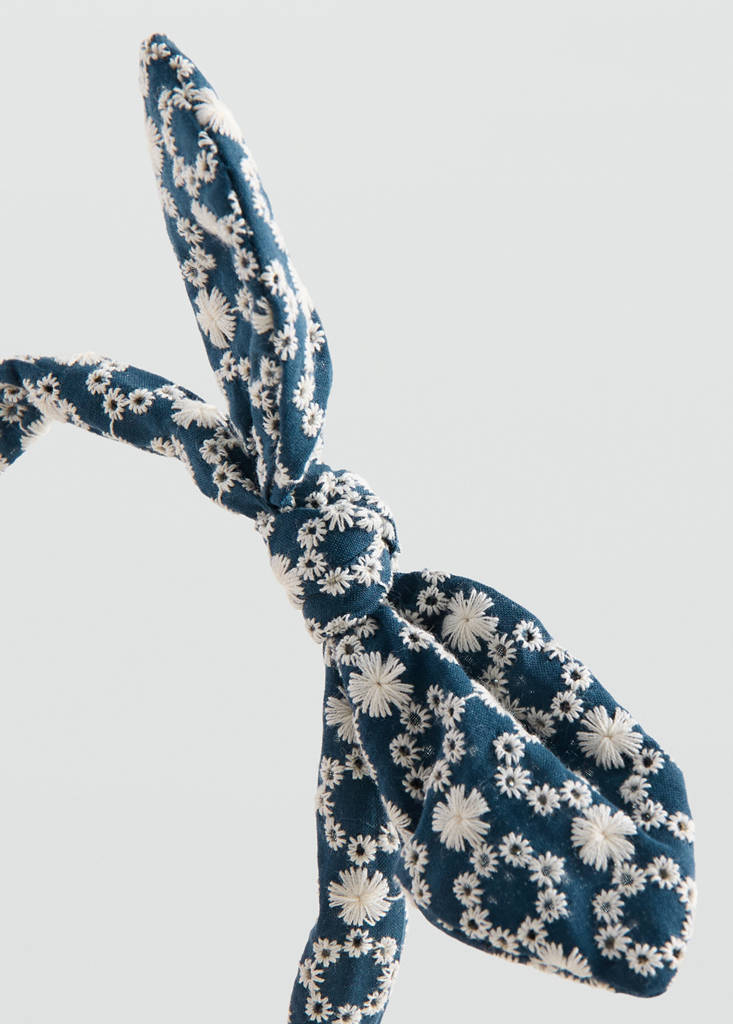 Tissu en coton. Serre-tête. Motif imprimé floral. Détails brodés. Nœud décoratif.