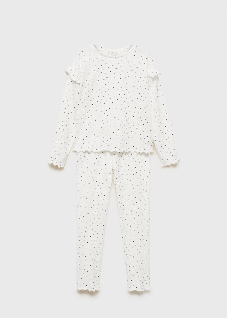 Pack de t-shirt et pantalon de pyjama. Design long. Col rond. Manche longue. Détail de volants. Taille élastiquée. 100 % coton. Imprimé étoiles. Coupe droite