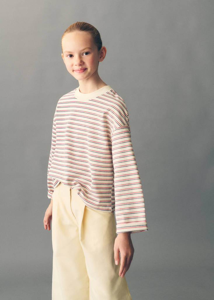 Tissu en coton mélangé. Imprimé rayures. Coupe droite. Col rond. Manche longue. Édition limitée