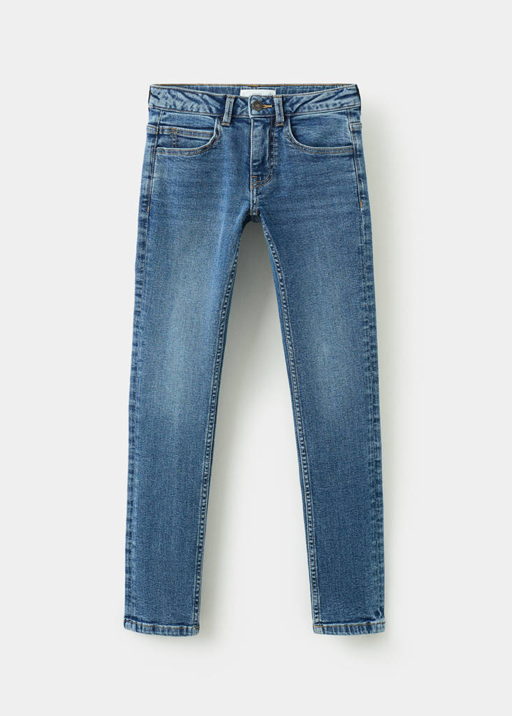 Taille Regular Waist. Structure plate moyenne. Longueur standard. Tissu en coton. Tissu élastique. Design long. Passants pour ceinture. Fermeture éclair et bouton. Deux poches latérales. Deux poches plaquées à l'arrière. Silhouette Skinny
