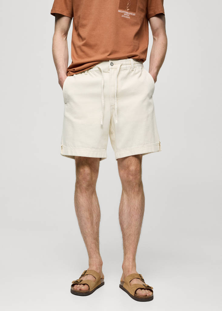 Taille élastique avec cordon ajustable. Deux poches avant. Passants de ceinture. Deux poches passepoilées à l'arrière. Détails surpiqués. Fermeture Éclair et bouton à l’avant. Tissu 100 % coton