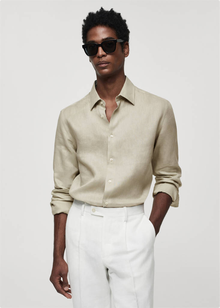 La couleur marron moyen est une exclusivité en ligne. Coupe regular. Tissu 100 % lin. Fermeture à boutons sur le devant. Manches longues et poignets boutonnés. Col classique. Ourlet arrondi