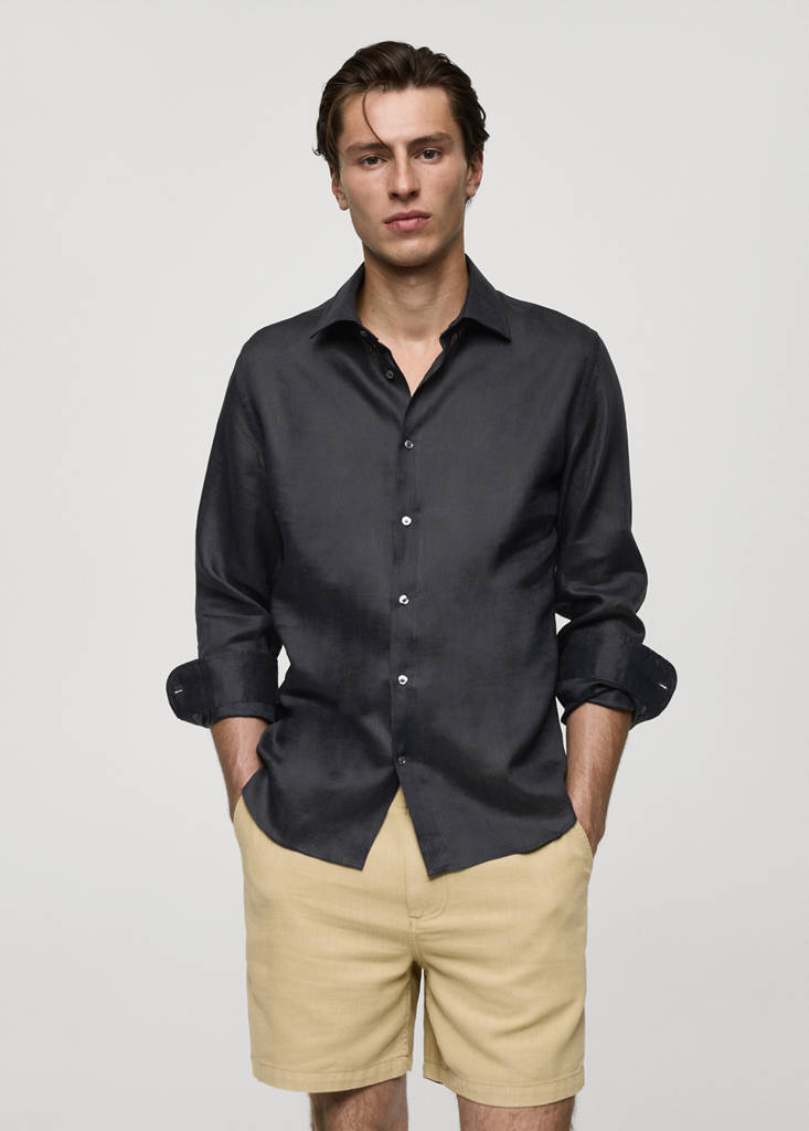 La couleur marron moyen est une exclusivité en ligne. Coupe regular. Tissu 100 % lin. Fermeture à boutons sur le devant. Manches longues et poignets boutonnés. Col classique. Ourlet arrondi