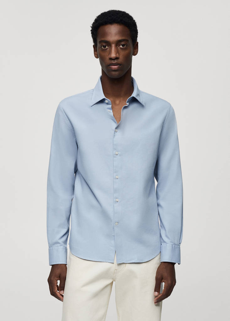 Collection Essentiels. Tissu structuré. Slim fit. Fermeture à bouton sur le devant. Manches longues et poignets boutonnés. Tissu avec microstructure. Ourlet arrondi. Col classique. Tissu 100 % coton