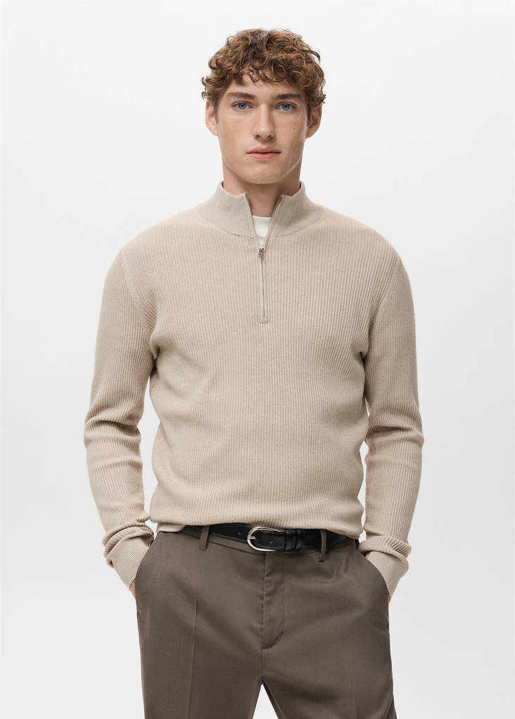 La couleur noire est exclusivement en ligne. Tissu en maille côtelée. Silhouette droite. Longueur standard. Col montant à fermeture Éclair. Manche longue. Col, poignets et ourlet côtelés.