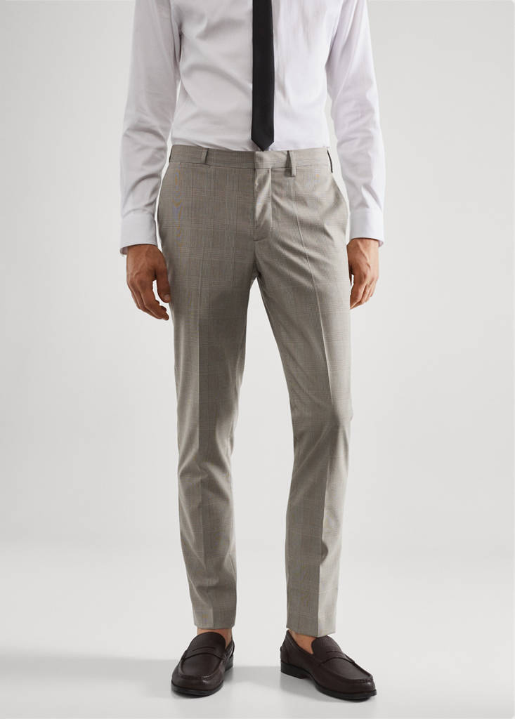 Super slim-fit. Confectionné en polyester recyclé, une fibre résistante, respirante et facile d'entretien qui permet un grand confort d’utilisation. Comfort Stretch : Tissu élastique pour plus de confort. Imprimé à carreaux prince de galles. Pinces sur le devant et à l'arrière. Fermeture Éclair avec agrafe et bouton dissimulés. Passants de ceinture. Deux poches latérales. Poche gousset au niveau des hanches. Deux poches passepoilées avec bouton à l'arrière. Collection tailleur. Confort : Ce vêtement offre une liberté de mouvement totale et retrouve sa forme initiale