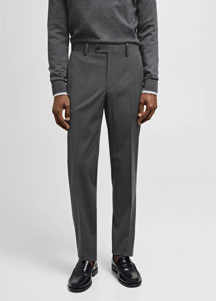Slim fit. Comfort Stretch : Tissu élastique pour plus de confort. Taille mi-haute. Passants de ceinture. Fermeture Éclair avec agrafe et bouton dissimulés. Deux poches latérales. Poche gousset dissimulée au niveau des hanches. Deux poches passepoilées avec bouton à l'arrière. Collection tailleur. Détail de pli marqué à l'avant et à l'arrière. Confort : Ce vêtement offre une liberté de mouvement totale et retrouve sa forme initiale