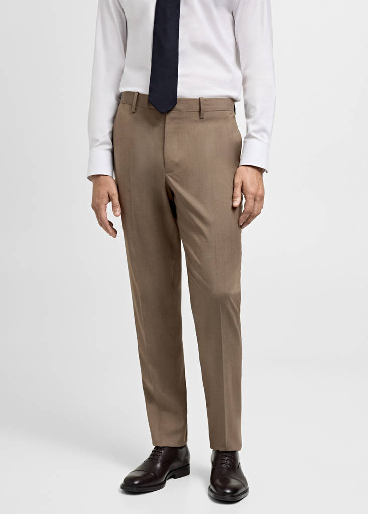 Collection tailleur. Slim fit. Comfort Stretch : Tissu élastique pour plus de confort. Structure à chevrons. Taille mi-haute. Passants de ceinture. Fermeture Éclair avec agrafe et bouton dissimulés. Deux poches latérales. Poche gousset dissimulée au niveau des hanches. Deux poches passepoilées avec bouton à l'arrière. Détail de pli marqué à l'avant et à l'arrière. Confort : Ce vêtement offre une liberté de mouvement totale et retrouve sa forme initiale