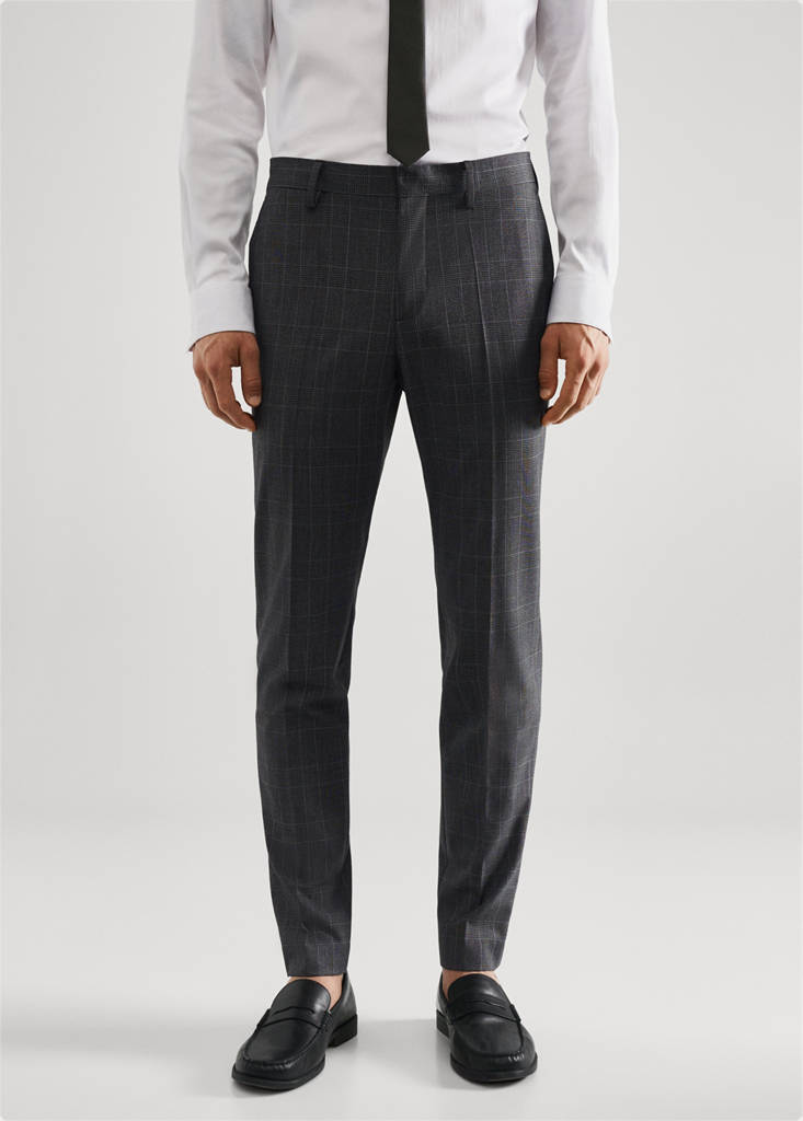 Super slim-fit. Confectionné en polyester recyclé, une fibre résistante, respirante et facile d'entretien qui permet un grand confort d’utilisation. Comfort Stretch : Tissu élastique pour plus de confort. Imprimé grands carreaux. Pinces sur le devant et à l'arrière. Fermeture Éclair avec agrafe et bouton dissimulés. Passants de ceinture. Deux poches latérales. Poche gousset au niveau des hanches. Deux poches passepoilées avec bouton à l'arrière. Collection tailleur. Confort : Ce vêtement offre une liberté de mouvement totale et retrouve sa forme initiale