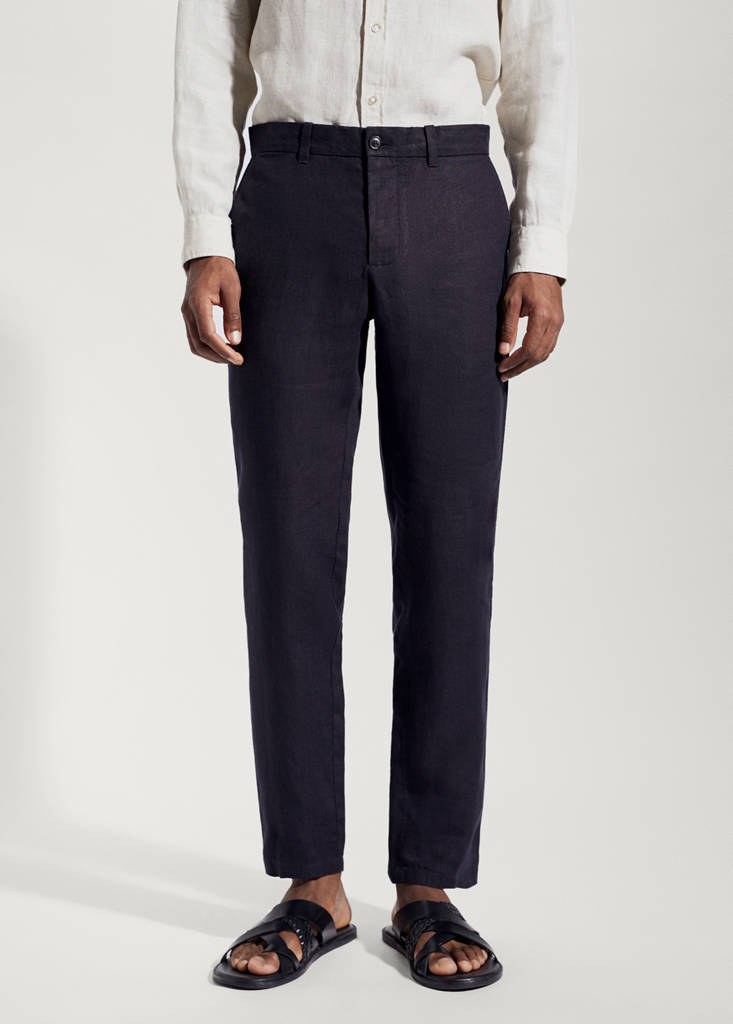 100 % lin. Slim-fit. Deux poches avant. Double bouton et fermeture Éclair. Passants de ceinture . Le mannequin mesure 185 cm et porte une taille 42. Collection Essentiels. Campagne Antoine Griezmann