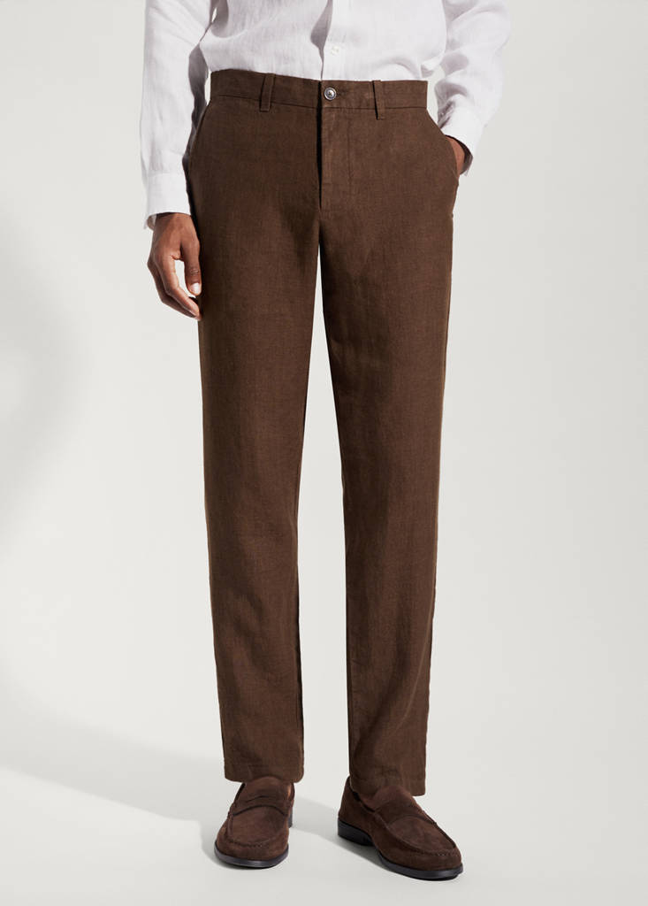 100 % lin. Slim-fit. Deux poches avant. Double bouton et fermeture Éclair. Passants de ceinture . Le mannequin mesure 185 cm et porte une taille 42. Collection Essentiels. Campagne Antoine Griezmann
