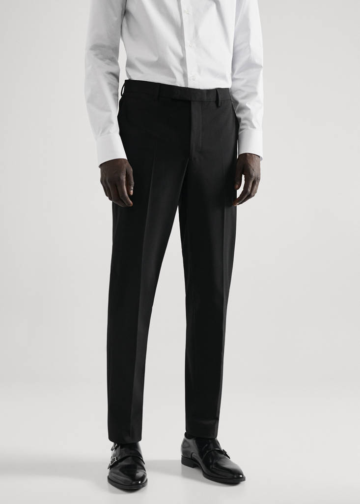 Slim fit. Taille mi-haute. Fermeture Éclair avec agrafe et bouton dissimulés. Passants de ceinture. Pinces. Deux poches avant. Deux poches passepoilées avec fermeture boutonnée à l'arrière. Collection tailleur