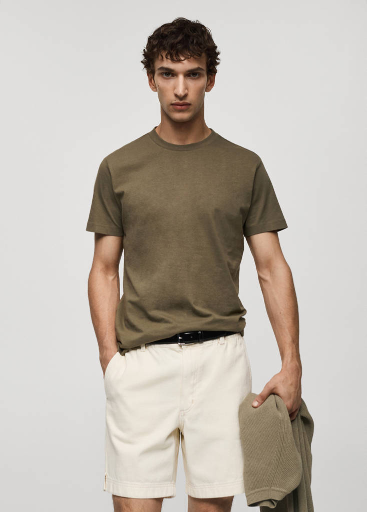 Les couleurs orange et bleu ciel sont des exclusivités en ligne. Slim fit. Tissu en mélange de coton. 100% coton. Tissu 100 % coton. Manches courtes. Col rond. Manches courtes. Ourlet droit. Les couleurs verte et camel sont des exclusivités en ligne. Longueur standard. Silhouette Slim. Col à revers Rond. Longueur de manche courte